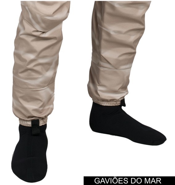 Existem umas botas com feltro apropriadas para este tipo de waders, mas na minha opinião estas botas são muito boas para pesca de água doce e no mar em cima de pedras, na areia vão ter um maior desgaste e será mais uma despesa para substituição do feltro. Por isso neste momento uso umas botas com dois tamanhos acima do meu pé, em neopreme com uma sola anti-derapante e dura.