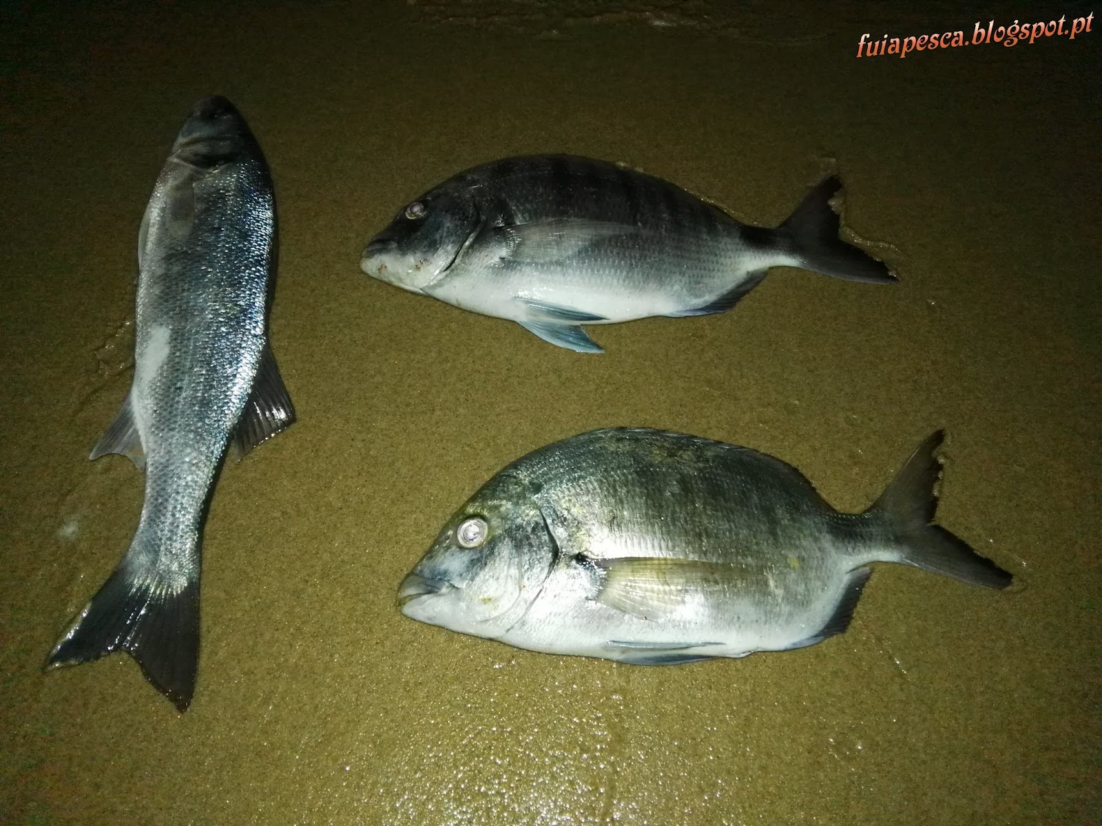 Em 3 fainas que fiz ao surfcasting, apenas isquei com choco congelado e um resto de salsicha que tinha por ali, dei com alguns sargos bons e um robalote, o resto era tudo peixe miúdo que eu libertei e tá claro a maldição dos safios... :(